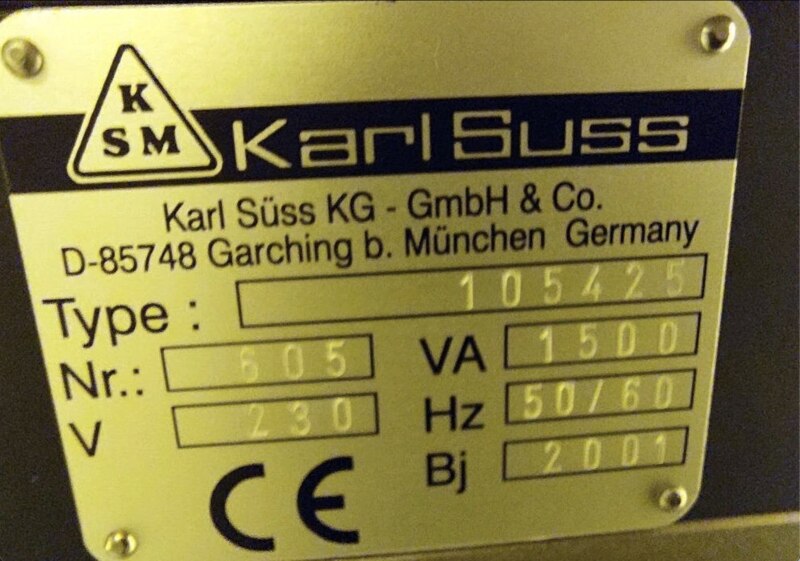 - Model: MA6 - Manufacturer: Suss MicroTec / Karl Suss - Wafer Size: Small Pieces up to 6”/150mm Diameter Wafers - Topside (TSA) Alignment - Backside IR (BSA) Alignment - Suss M306 Splitfield Microscope - 1000W Lamp House - CIC 1200 Power Supply - Capable of Hard, Soft, Vacuum, and Proximity Contact with appropriate tooling - Customer using Soft and Hard Contacts - Vibration Isolation Table (for Suss MA6) - 1 Chuck included - 1 Maskholder - System Power: 230V, 50/60 Hz - Operations Manual for Suss MA6 Mask Aligner - Fully Refurbished by Suss factory trained technicians