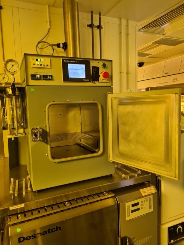 - Model: YES-310TAE - HMDS Vapor Prime and Vacuum Bake Oven - Chamber Dimensions 12" x 12" x 13.25" - Athena Controls Temperature Controller - HMDS Cylinder - Quickpanel Jr. PLC - Granville-Phillips 375 Convectron Gauge - Power: 120V, 11A, 1300 Watts, 50/60 Hz - Operating Manuals and Documentation